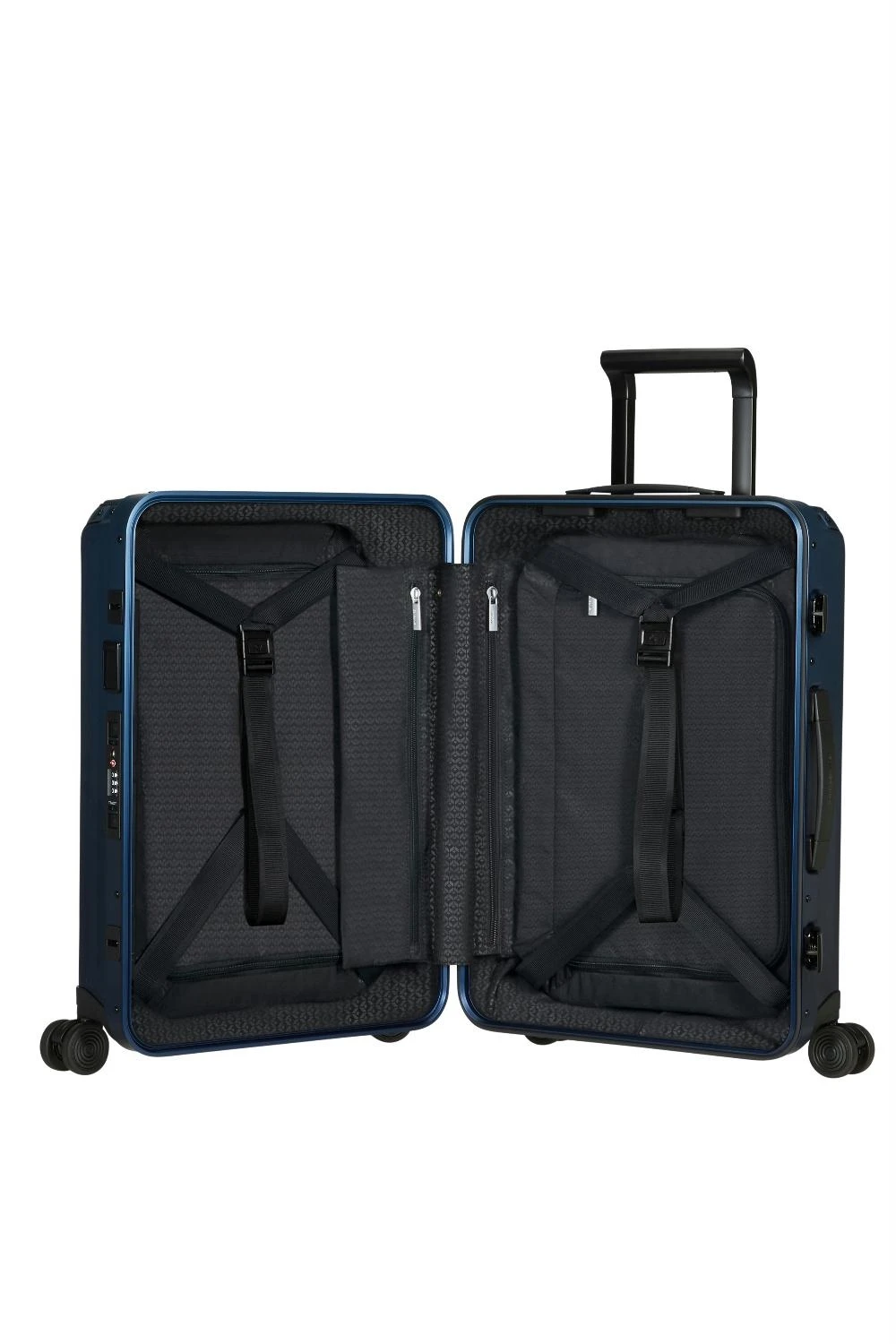 De Samsonite Lite-Box Alu collectie beschikt over koffers van hoge kwaliteit. De koffers zijn vervaardigd uit geanodiseerd aluminium en zijn voorzien van verstevigingen aan de hoeken. Dit sterke ontwerp is gecombineerd met een stijlvol design, comfort en een praktische indeling. Het interieur van de Lite-Box Alu Spinner 55cm is voorzien van twee ruime compartimenten met inpakriemen voor het compact opbergen van bagage. Twee verwijderbare verdelers zijn voorzien van een extra ritsvakje voor het opbergen van kleine eigendommen. Daarnaast beschikt de koffer over dubbele wielen en een dubbele trektang. Hierdoor is de koffer comfortabel te vervoeren.