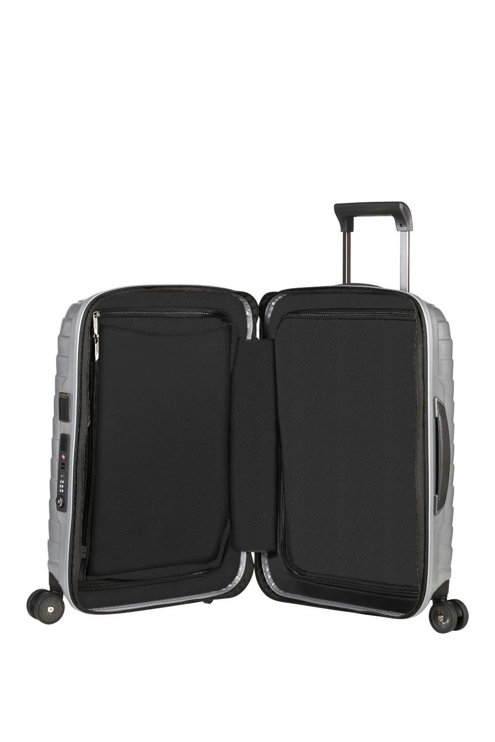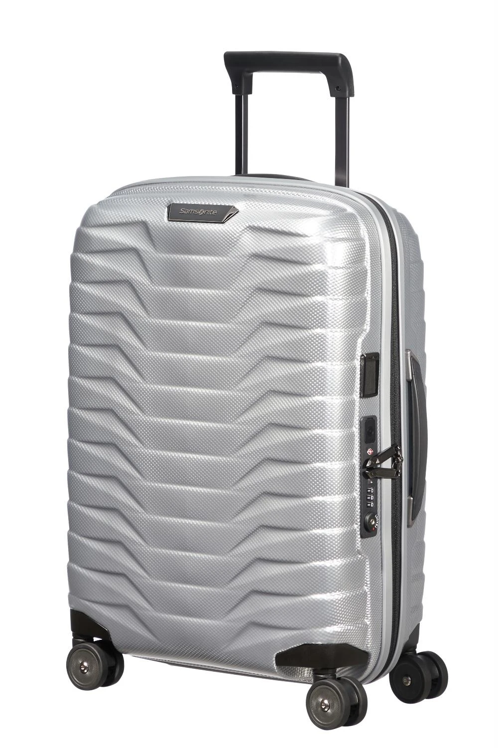 De Samsonite Proxis handbagage 55cm. (126035 1776 zilver) heeft een prachtig design en is ontworpen om aan al jouw behoeften te voldoen. De koffer is overzichtelijk om in te ruimen en voorzien van soepele wielen. Je kunt hem achter je aan trekken maar ook voor je uit duwen. De koffer is uitbreidbaar door middel van een rits en voorzien van geïntegreerde USB poort. Aan de zijkant bevind zich een slot met een TSA functie en een naamlabel.