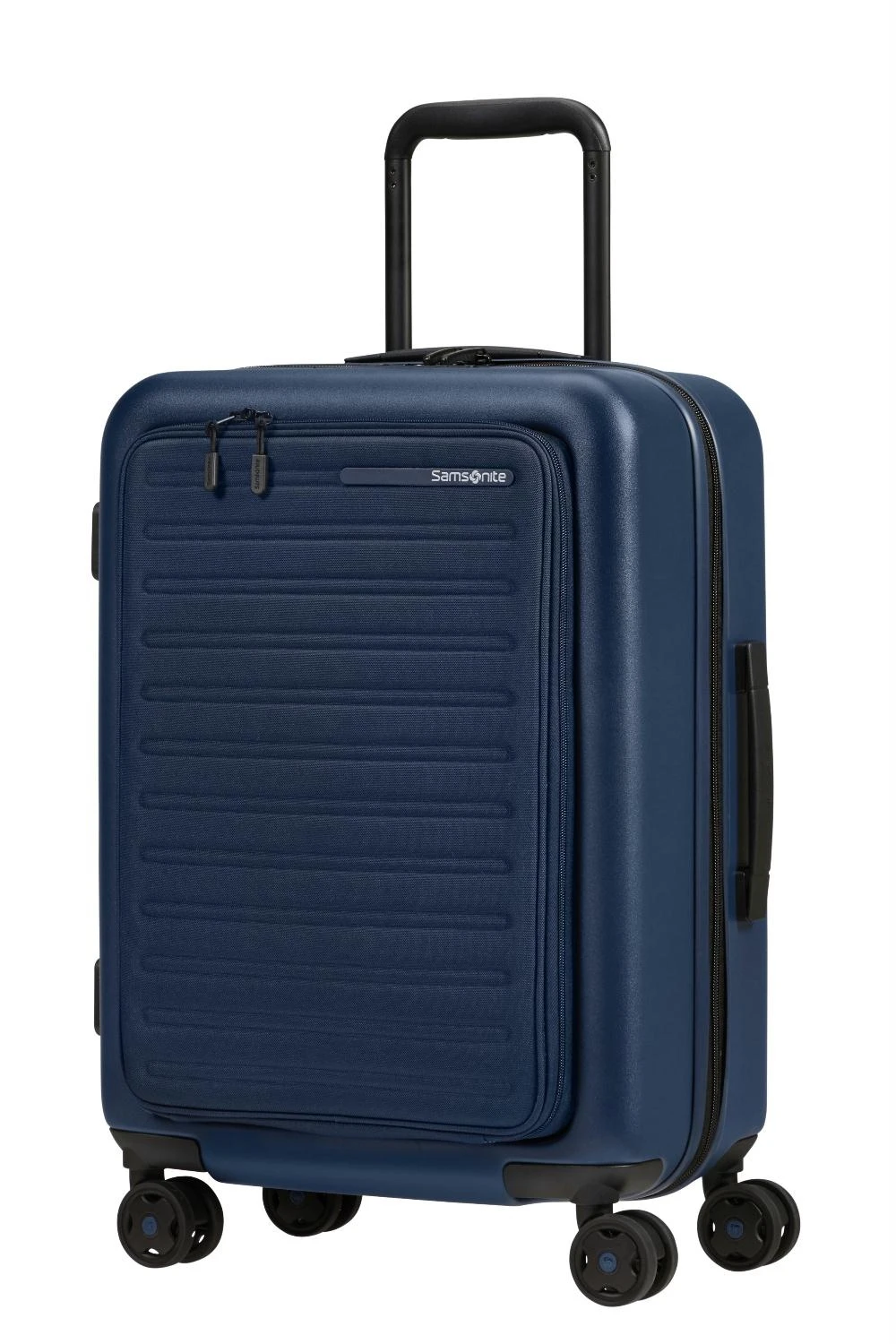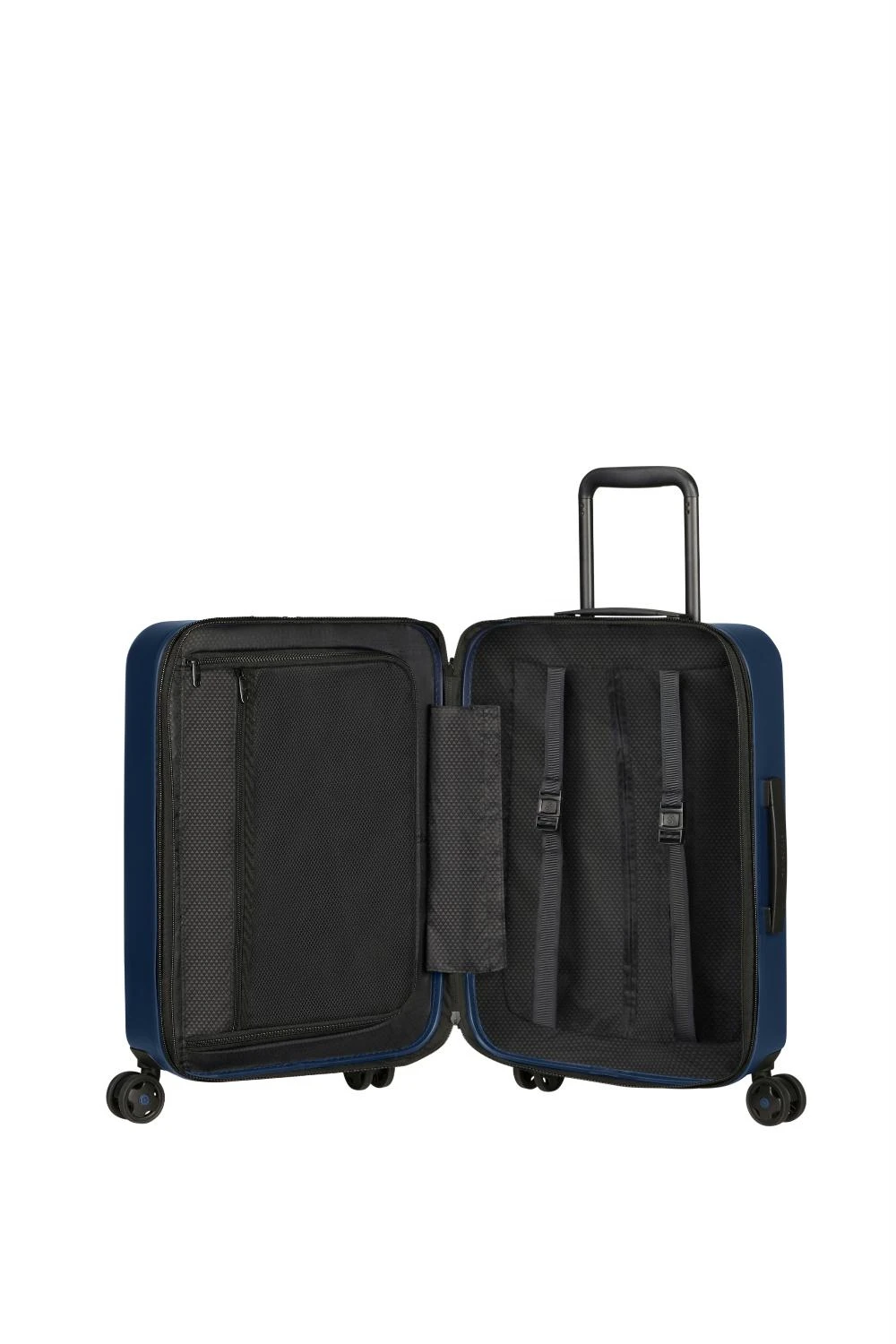 De Samsonite StackD spinner 55cm Exp 15,6″ (135418 1596 Navy) is de high tech koffer van het merk Samsonite. Deze business handbagage koffer is innovatief en heeft een strak design. Tevens is bij het ontwerp van de koffer aan alles gedacht. Het voordeel is namelijk het voorvak, deze sluit doormiddel van een rits. Je kunt er snel en gemakkelijk bij, ideaal wanneer je bijvoorbeeld tijdens het wachten op het vliegveld nog wilt werken. In dit voorvak is er ruimte voor je 15,6″ laptop, 10,5″ tablet. Maar ook voor je smartphone en powerbank heb is er een apart vakje.
