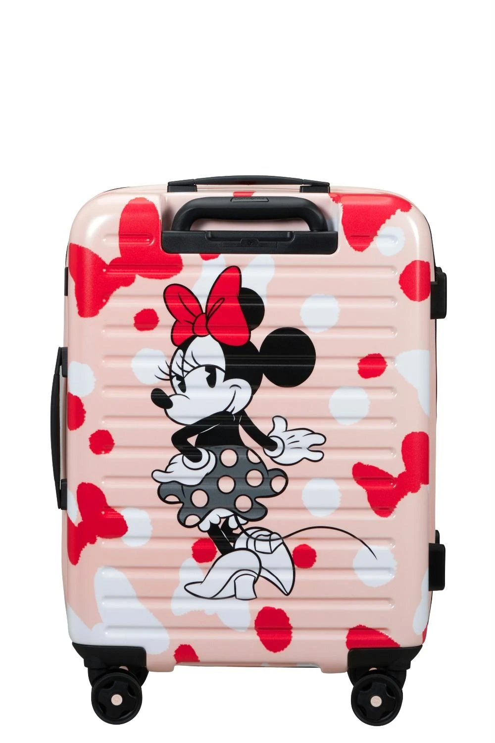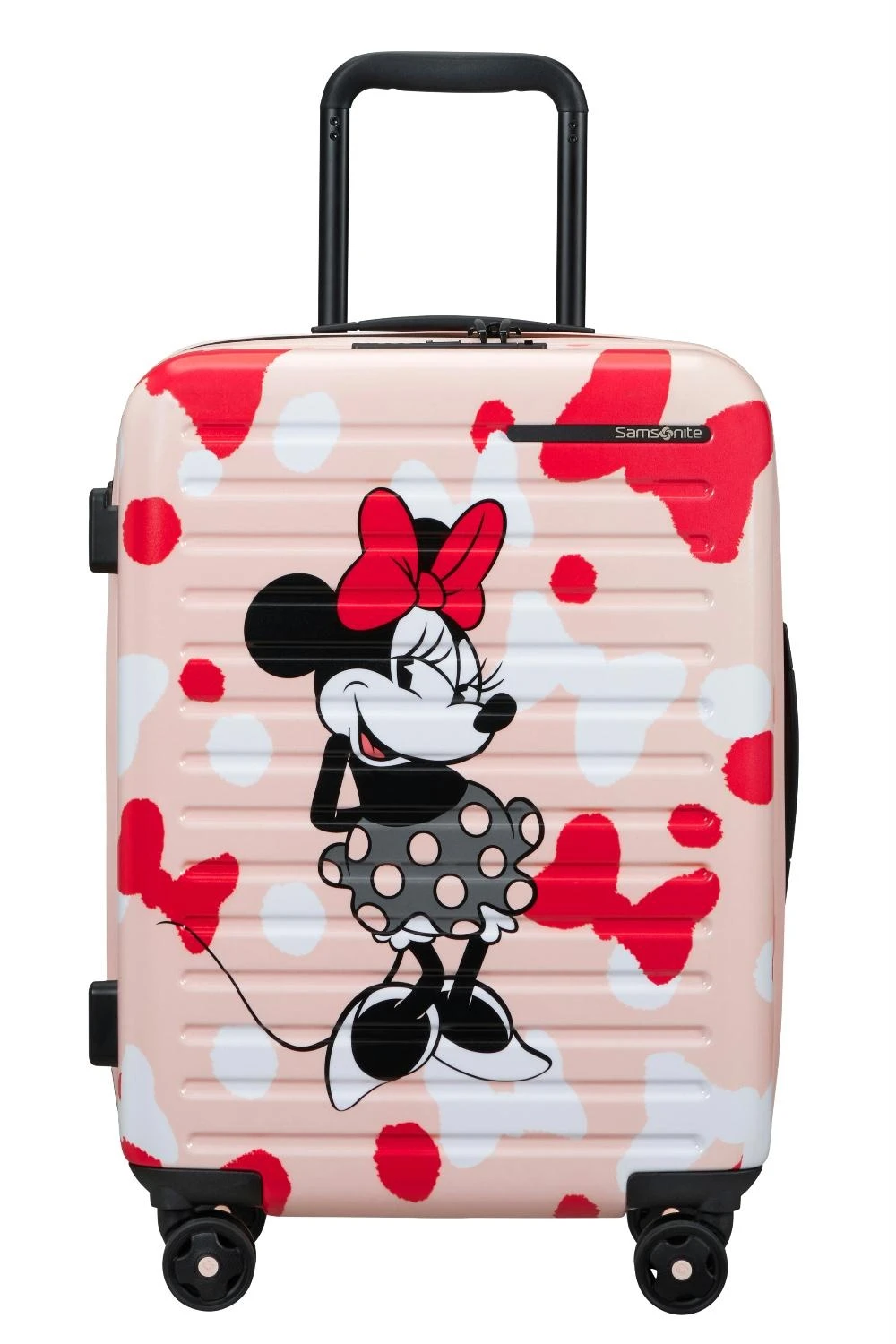 Met de Samsonite StackD spinner 55cm Exp 15,6″ (14432 5424 Minnie bow) val je lekker op met de Mini Mouse details aan de binnen en buitenkant.